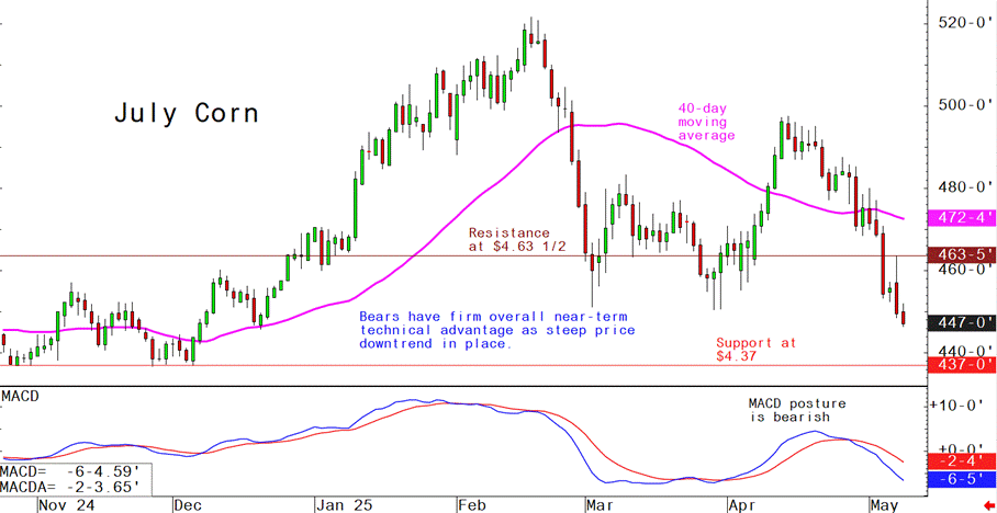 July corn futures--$4.40 to $4.70 and a sideways-lower bias