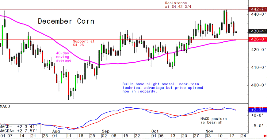 December corn futures--$4.25 to $4.40 and a sideways bias