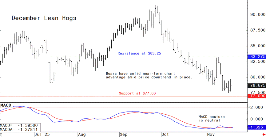 December lean hog futures--$77.00 to $82.00 and with a sideways-lower bias