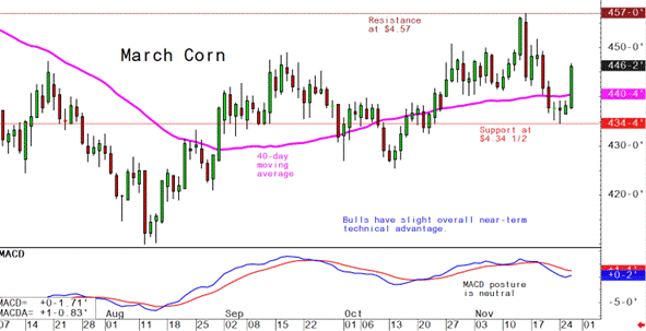 March corn futures--$4.34 1/2 to $4.57 and a sideways-higher bias