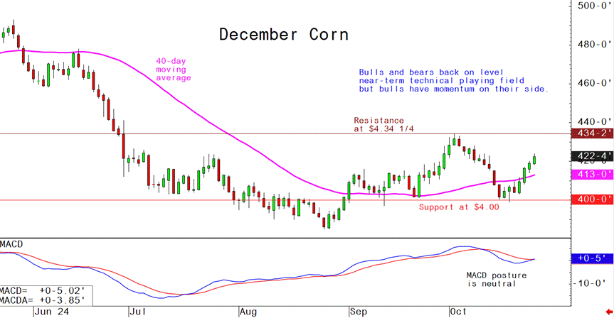 December corn futures--$4.00 to $4.34 1/4 and a sideways-higher bias