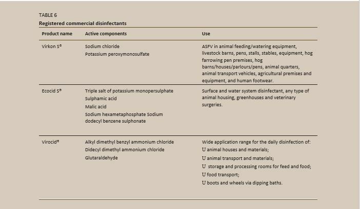DISINFECTANTS RECOMMENDED FOR AFRICAN SWINE FEVER VIRUS