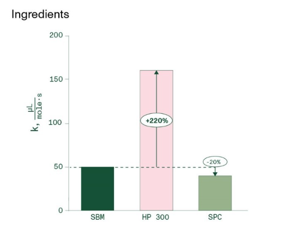 From the findings of this study, we conclude that (young) animals have a requirement in fast protein as this enables them to use more of the protein for deposition. Furthermore, when supplementing diets with synthetic amino acids, the absorption of all the amino acids from the diet need to be synchronized with these synthetic amino acids not to lose efficiency. A fast protein source allows for good synchronization in the absorption of amino acids. Hamlet Protein produces the fastest vegetable protein source which is also almost free of the most important anti-nutritional factors. Studies show that the Hamlet Protein portfolio outperforms all vegetable protein sources when it comes to kinetics and is also on par with the animal proteins like fish meal and blood plasma. We therefore propose a new positioning and reappreciation of our flagship product HP300 as the only vegetable plasma on the market.