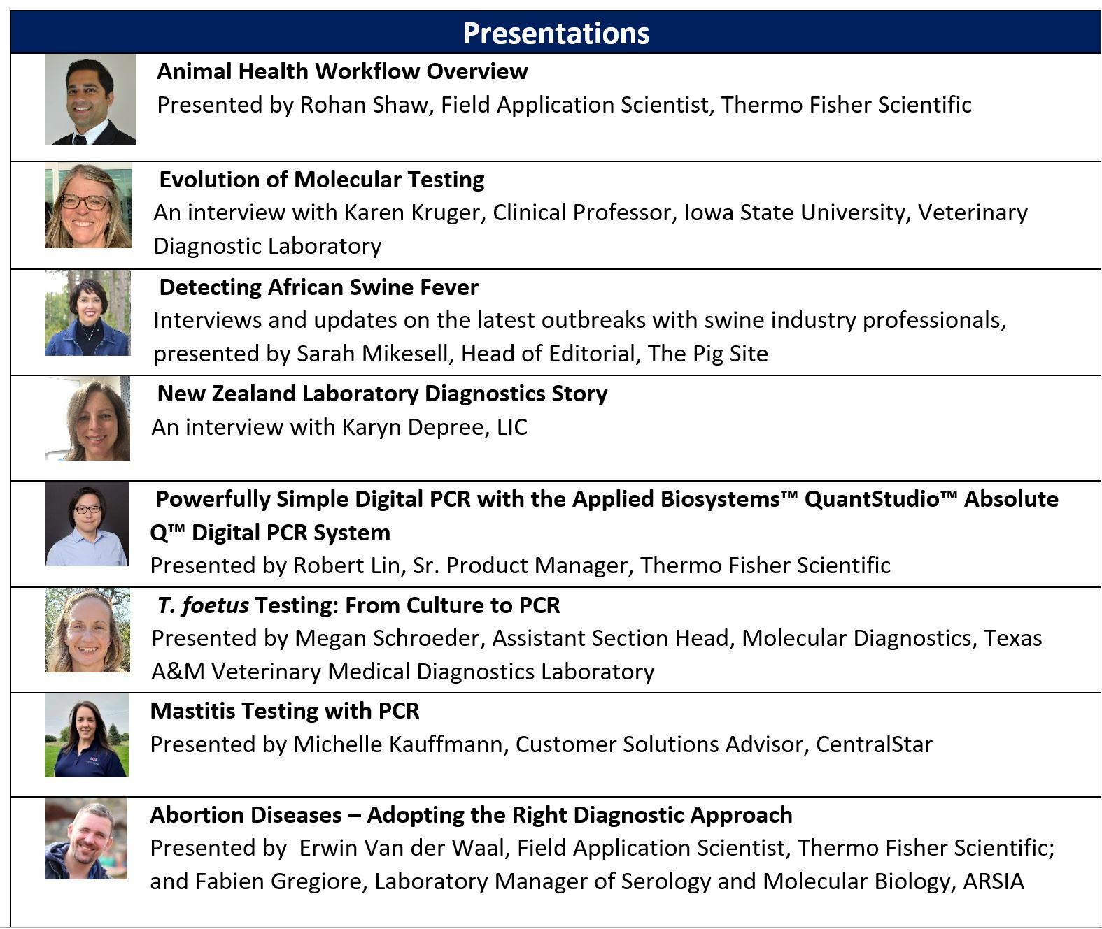 The Animal Health Dx Summit will feature: