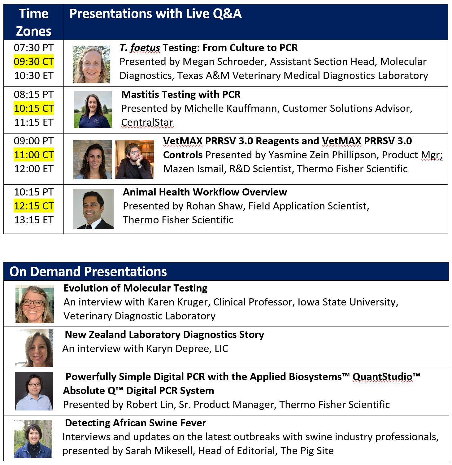 We have a mix of scheduled presentations with live Q&A and on demand presentations for your convenience during this event. Pick and choose the presentations that interest you. If you have questions regarding any of the content outside of the live Q&A sessions, please stop by the networking lounge and click on the Ask the Expert banner or stop by one of the booths to chat with one of our experts.