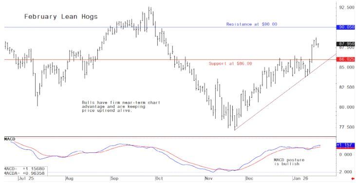 February lean hog futures--$86.00 to $90.00 and with a sideways-higher bias