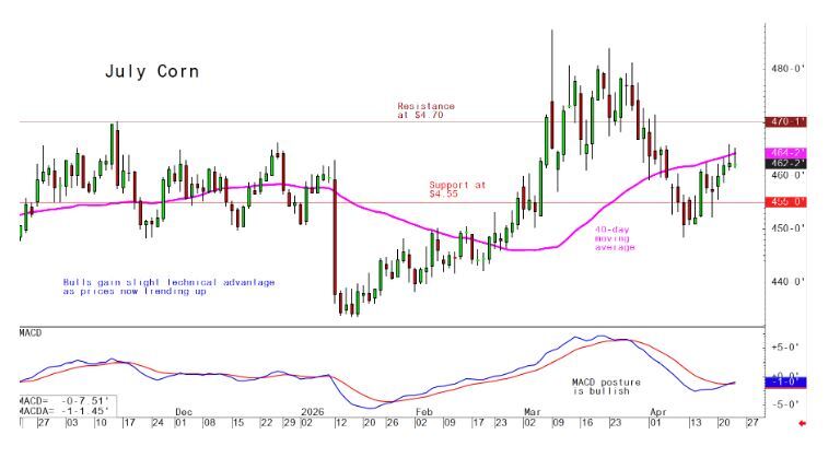 July corn futures--$4.55 to $4.75 and a sideways-higher bias
