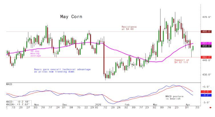 May corn futures--$4.42 1/4 to $4.60 and a sideways bias