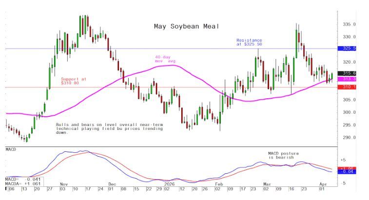 May soybean meal futures--$310.00 to $325.00, and with a sideways bias
