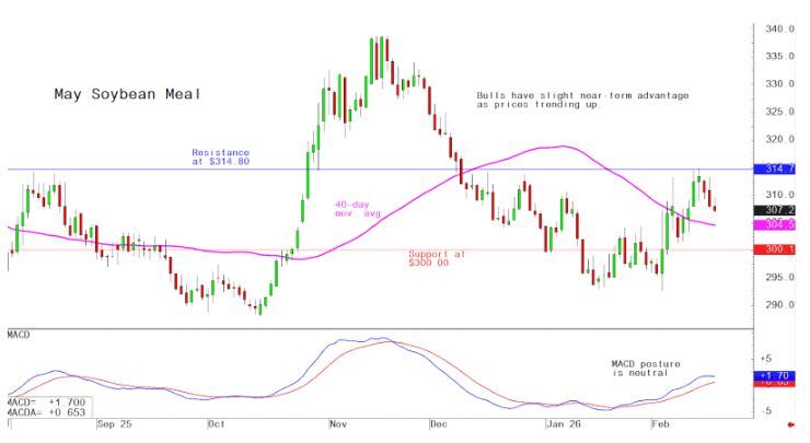 May soybean meal futures--$300.00 to $315.00, and with a sideways-higher bias