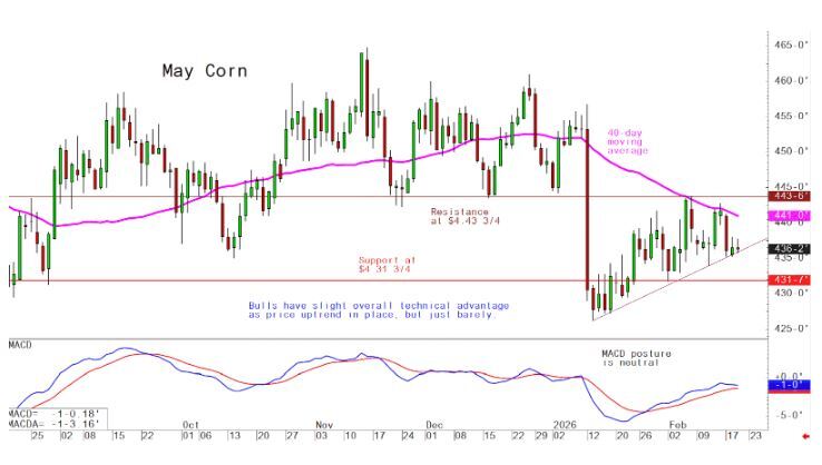 May corn futures--$4.30 to $4.45 and a sideways-higher bias