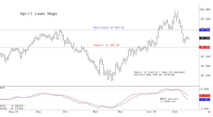 April lean hog futures--$90.00 to $93.75 and with a sideways-lower bias