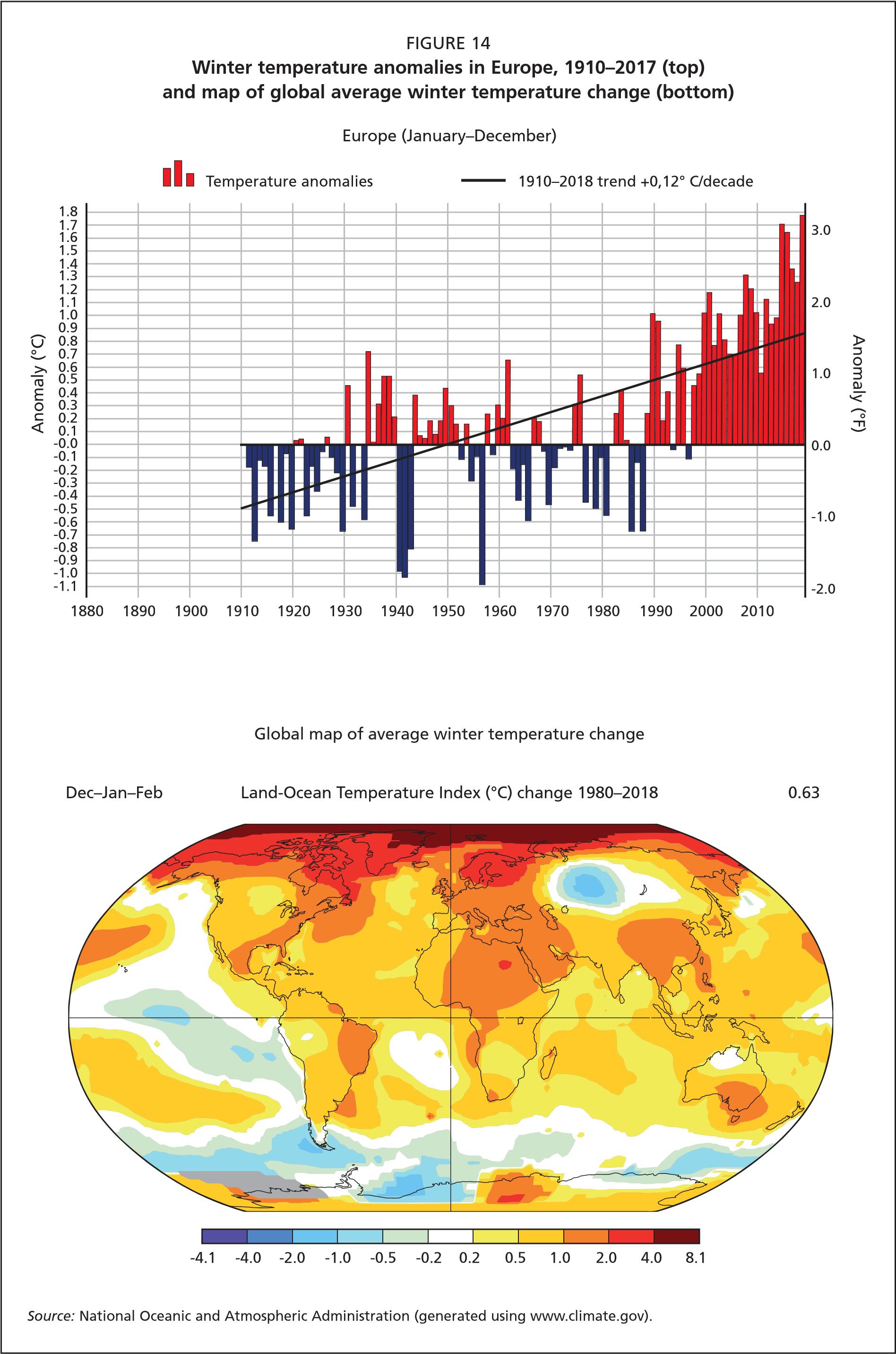 A number of recent studies suggest that the increase in wild boar populations in Europe is strongly driven by climate change (Vetter et al., 2015), and that this trend appears to be irresponsive to the existing levels of hunting pressure (Massei et al., 2015). Although population growth is reportedly associated with increasingly warmer winter conditions everywhere (Figure 14), its rate was highest in the colder climates (Vetter et al., 2015). Eastern European populations of wild boar were more responsive to favourable changes in winter weather and reached maturity more quickly. Whether this result is due to better adaptation of “northern” wild boar to the cold, or is related to the widespread practice of providing supplementary feed, remains to be investigated. But it is very likely that the winter feeding of animals in colder climates has made a significant contribution to the better survival and reproduction rates of wild boar and should be considered in the analysis of population growth.