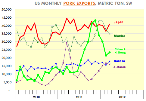 higher than a year ago. Exports of fresh/frozen pork to Japan in
