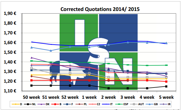 The Netherlands stand out from it all this week: There, the market situation was regarded so positively on Friday that the corrected Dutch quotation exceeds last week’s level by a corrected 1.9 cents, even without any target being set from Germany.