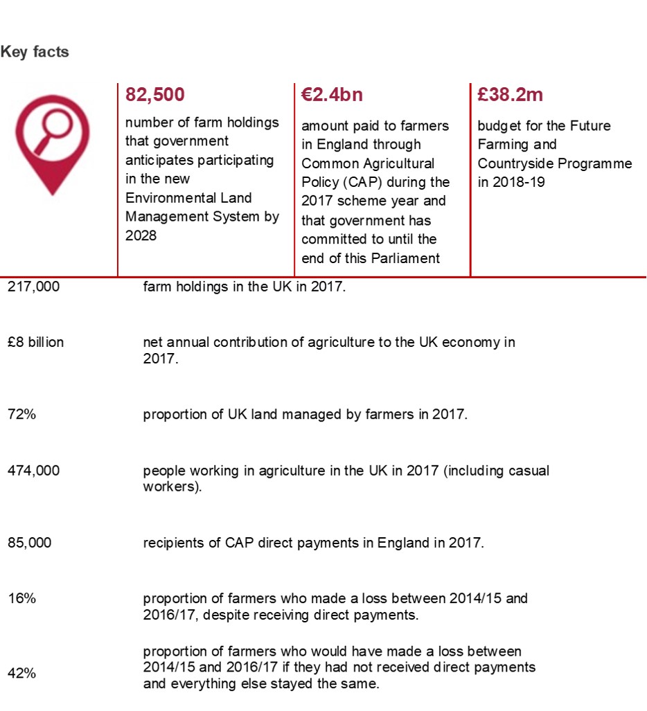 The UK farming industry provides over half of the food the UK eats, employs 474,000 people and comprises 217,000 farms. While a member of the EU, the UK takes part in the Common Agricultural Policy (CAP). Under CAP, farmers in England received €2.4 billion in subsidies in 2017. To prepare for exiting the EU, Defra is developing the Future Farming and Countryside Programme (the Programme) to implement a new agricultural policy and regulatory arrangements to replace CAP.