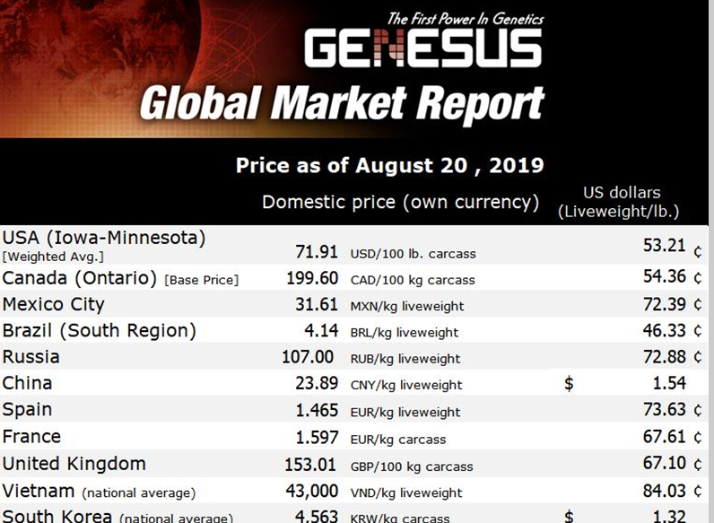 There is a lower supply of hogs because of the summer temperature, but this is balanced by a lower demand from the packing plant. Some have stopped working one day per week, for balancing the lower supply and the pork price. Producers are retaining what they can, to achieve higher weights seeing the price trend to rise.
