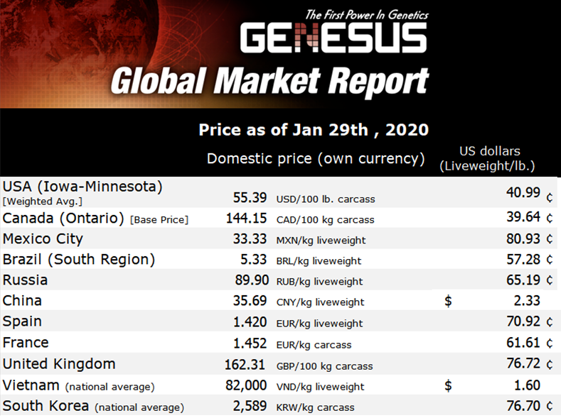 For 2020, Spanish market is optimistic, against the fact that ASF (African Swine Fever) it still a treat for Europe. This year price started at € 1.49 / kg (74.41¢ US /lb) live weight, compared with € 1,038 / kg (51.84¢ US /lb) live-weight compared with same period last year.