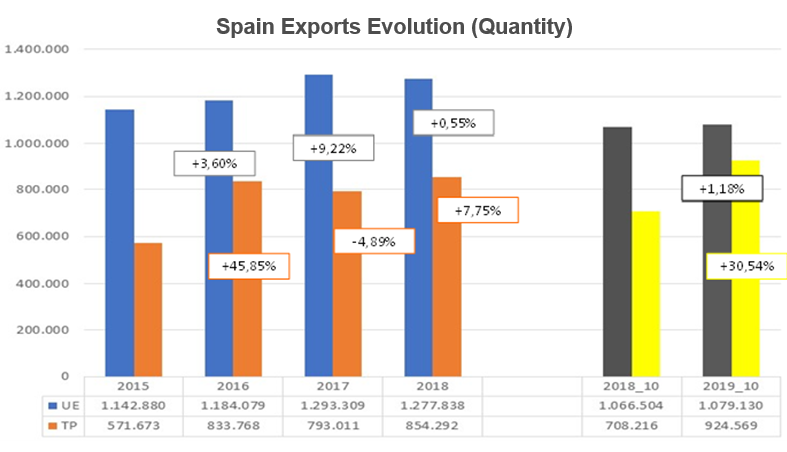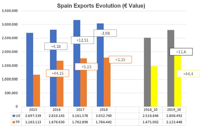 The following graphs show the evolution of exports since 2015 and the evolution of 2019 compared to 2018.