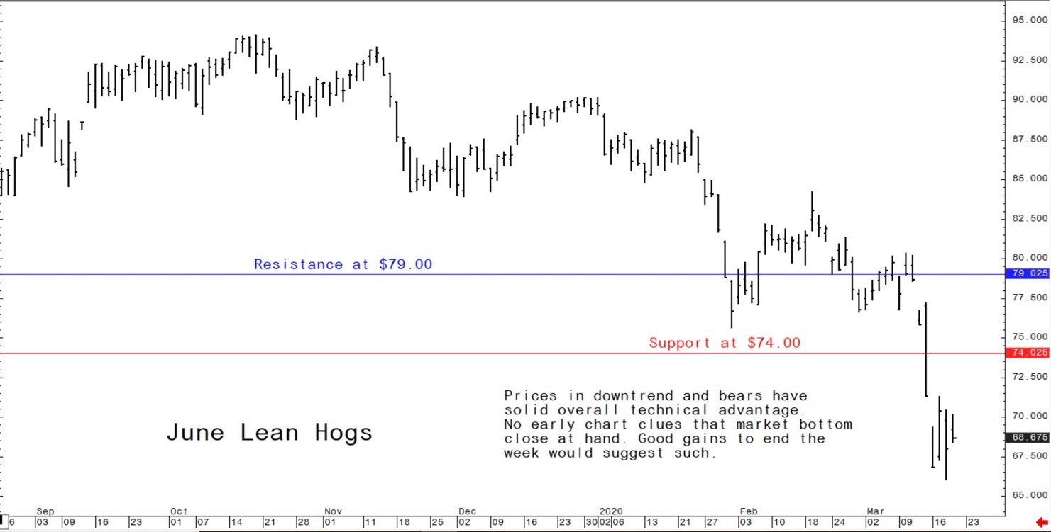 June lean hog futures: $66.00 to $72.50, and with an upside bias.