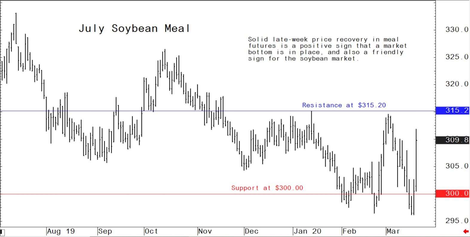 May soybean meal futures: $310.00 to $325.00, and with an upside bias.