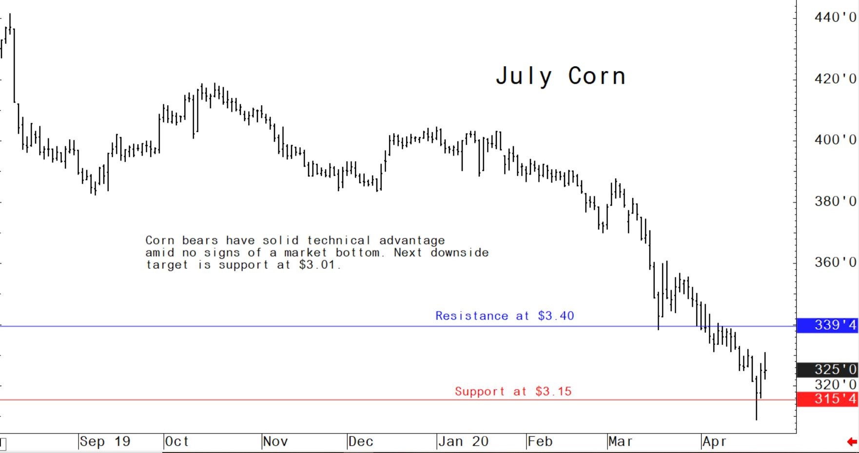 July corn futures: $3.15 to $3.35, and a sideways.