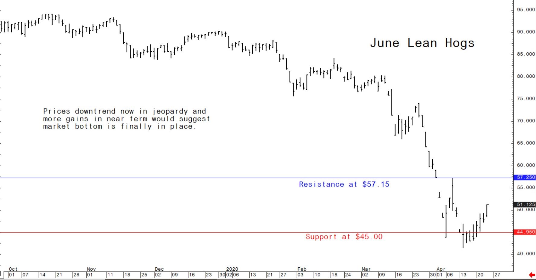 June lean hog futures: $45.00 to $50.00, and with an upside bias.