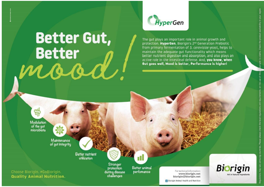 The company has recently launched HyperGen, Biorigin’s 2nd Generation Prebiotic, produced from the primary fermentation process of the yeast S. cerevisiae. “HyperGen helps the maintenance of intestinal functions, promoting better nutrient digestion and absorption. In addition, it plays an activerole in intestinal defenses”, explains Eliana Dantas, Biorigin’s Poultry and Swine Technical Manager.