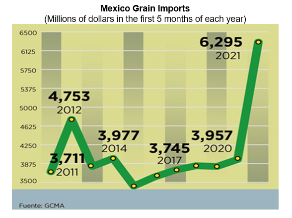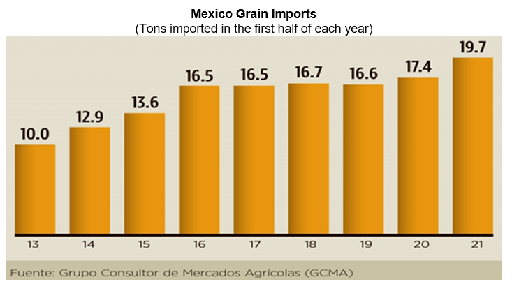 Confronted with the Guarantee Prices program that is still far from guaranteeing the country's food security, Mexico closed the first half of 2021 beating its record in the purchase of grains and oilseeds abroad, according to estimations from Agricultural Markets Consultant Group (GCMA).