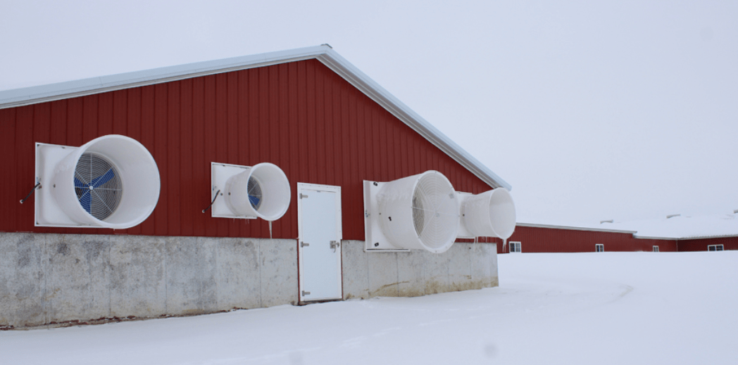 14-inch and 18-inch AirStorm fans pull air from the ten-foot deep pit under the building with actuated ceiling inlets supplying incoming air. Additional AirStorm wall fans provide transition airflow until the building goes into tunnel ventilation with a cool cell system during the summer heat.