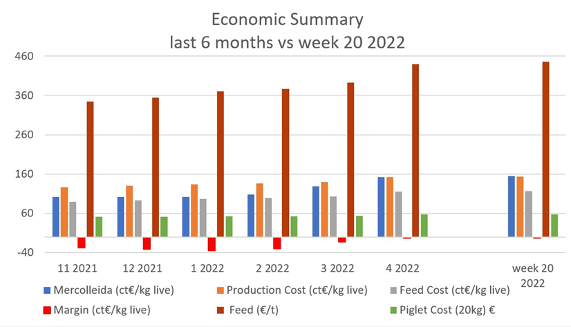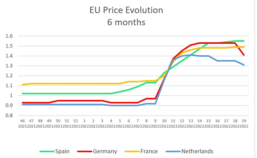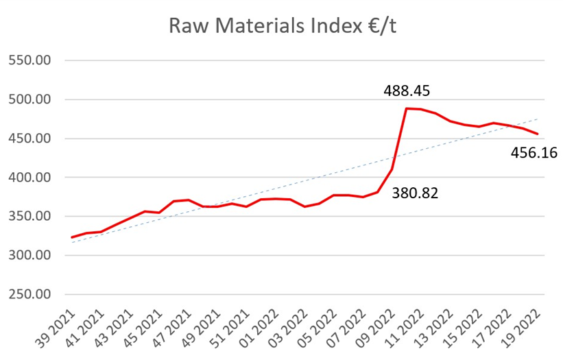 Good price evolution does not compensate for the high value of raw materials, although they have been falling since the peak in the second week of March, they are still at very high prices and are not expected to fall in the short/medium term.