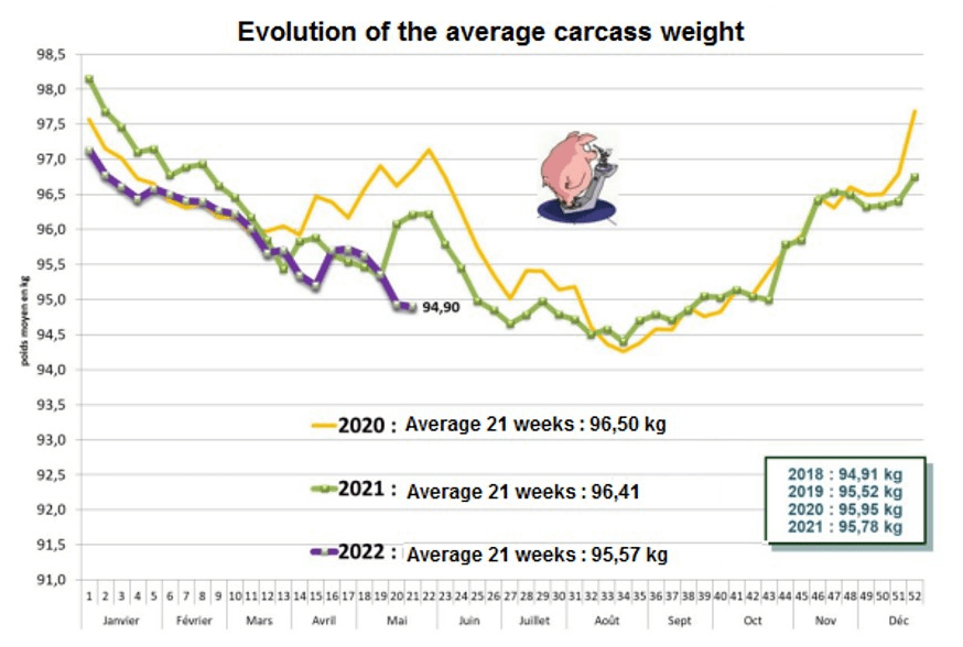 Average carcass weight is decreasing, a consequence of the drop in production. The main reason for production decline is record feed prices.