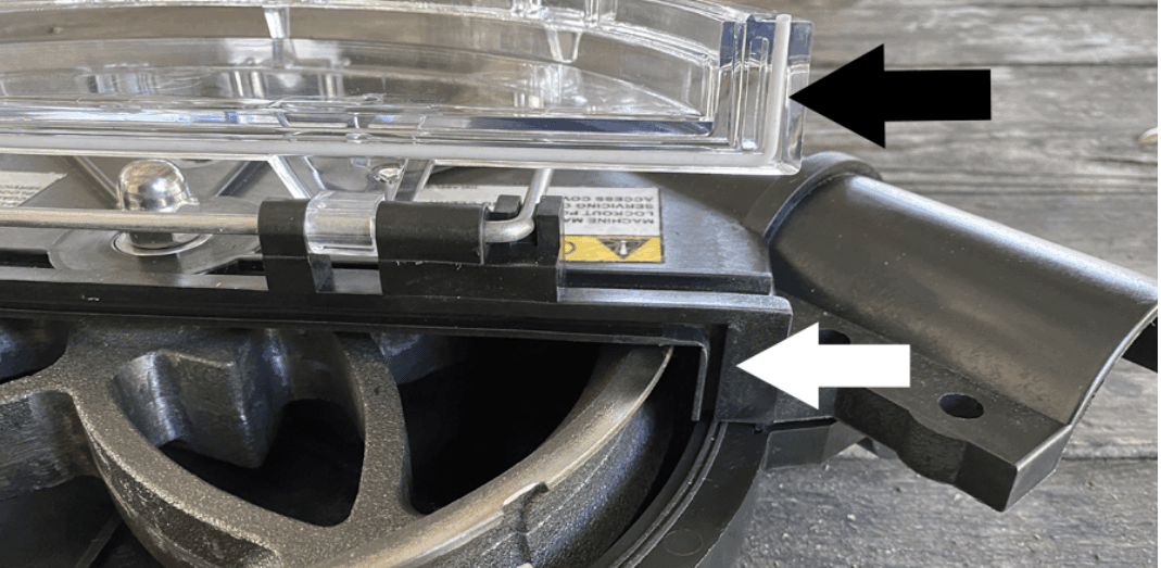 Not only does the transparent window allow for quick detection of a problem, but it also can be quickly opened by flipping the three cam latches. After removing any feed buildup, shutting the latches pulls the gasketed edges of the door tight against the housing, preventing any leakage.