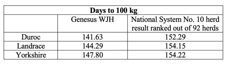 In China, there are 92 swine nucleus farms in the National Breeding Pig Evaluation Program. As part of the program, the data is evaluated by comparing and ranking the performance of each participating nucleus. With 92 farms participating we are unaware of any such comparison ongoing of such scale in the world. Our understanding is all major swine genetic companies have nucleus farms in the national program. It’s quite a unique structure. When you consider the scale and competition for the 92 farms, we were really pleased to see Genesus Nucleus Meishan Wanjiahao Pig Breeding Co., Ltd. (WJH) dominating the recently published data reports. Genesus WJH No. 1 Duroc 141.63 days. Genesus WJH No. 1 Landrace 144.29 days. Genesus WJH No. 2 Yorkshire 147.80 days.