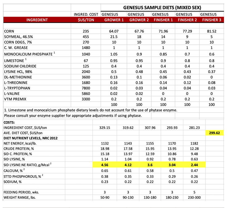 KSU Lysine Calculator for Genesus Grow-Finish Pigs
