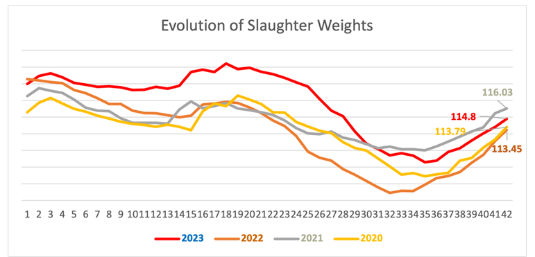 Weights continue to increase. We are in autumn, and we are already at 114.8 kg live above a year ago, but already in weights in which the market has been moving in recent years.