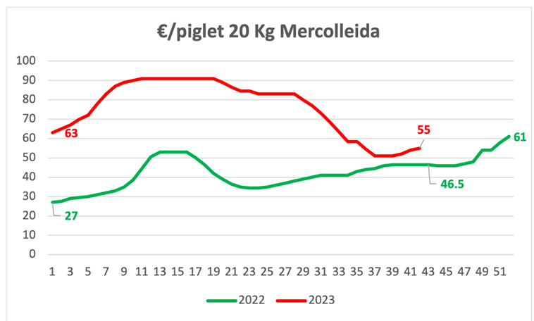 The price of piglets is recovering, even though it dropped, it is still higher than a year ago.