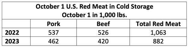 Certainly, less Pork and Beef in Cold storage 181 million lbs. less. Positive for price upside.