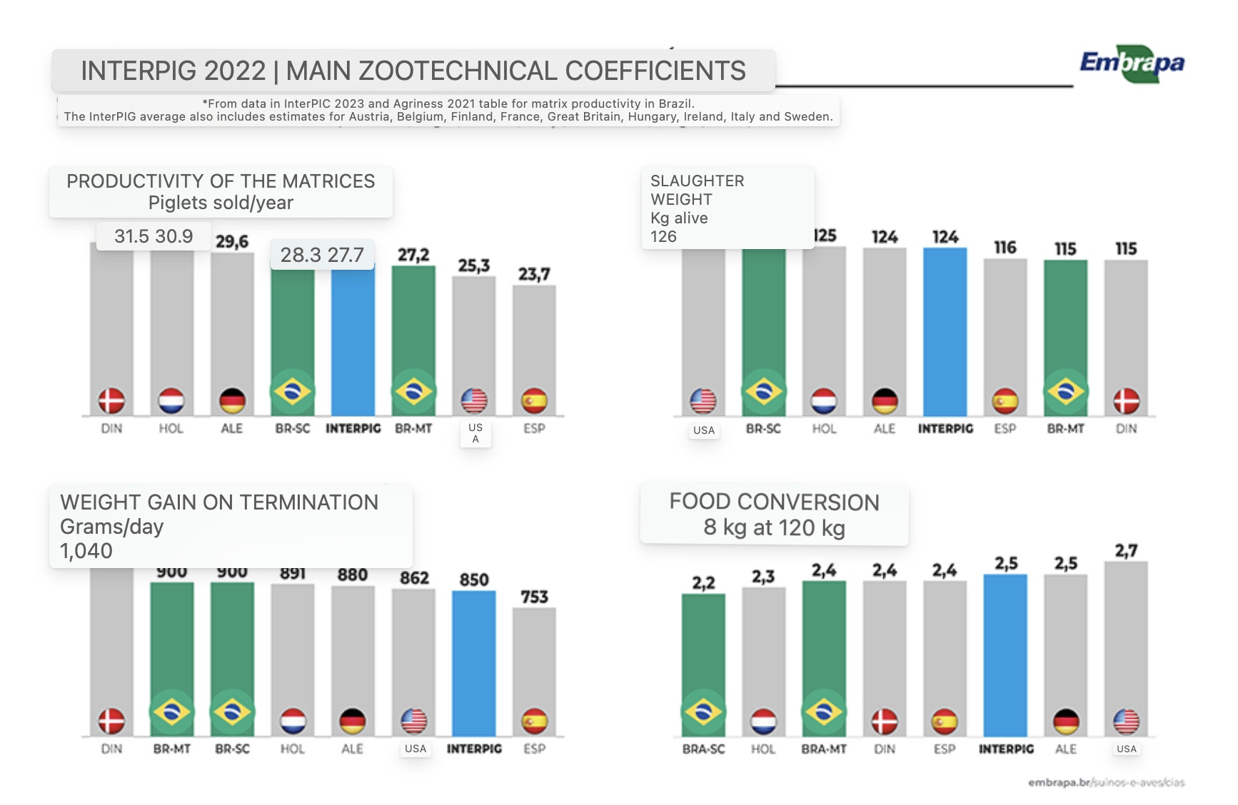 The main factors that explain Brazil's lower costs compared to these countries are related to productive efficiency and prices. On the one hand, the country has presented competitive zootechnical coefficients compared to most of its competitors, the result mainly of the incorporation of technology and the health of the herds achieved with investments in biosecurity on farms and in agricultural defence.