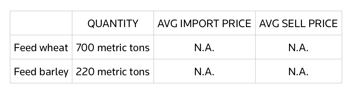 Japan buys and sells feed wheat and barley via SBS auctionsJapan will import 700 metric tons of feed-quality wheat, and 220 tons of barley for livestock use, via a simultaneous buy and sell (SBS) auction that closed late on Wednesday, Reuters reported, citing the Ministry of Agriculture, Forestry and Fisheries (MAFF).
