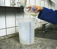The reconstituted vaccine (2 ml per animal) is poured into the milk/water mixture.