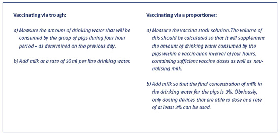 The animals should not be deprived of water prior to vaccination, as a lack might not be tolerated well – especially in young pigs – and could lead to stress and aggression so hampering the success of the vaccination