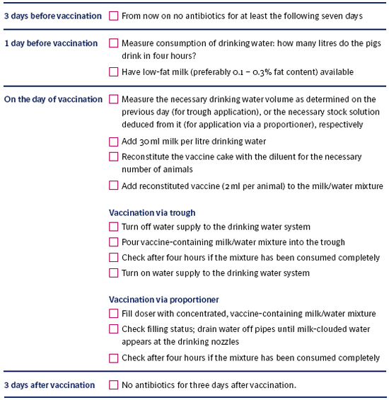 7.6.5 Checklist for a correct Enterisol® Ileitis vaccination