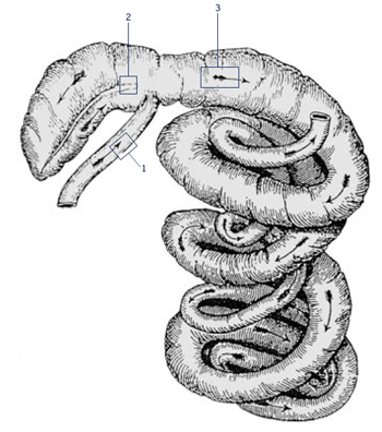 Take samples for PCR and histopathology/IHC at 10cm before ileal-caecal entrance (number 1), 5cm at the base of the caecum (number 2), and at 10cm of the upper proximal colon (number 3). Place samples for histopathology in the jar with formaldehyde and avoid any damage to the very sensitive mucosal surface. Use three separate plastic containers for PCR tissues, which need to be placed on ice immediately. Make sure, all containers are labelled with a permanent marker, to be able to identify animal number and site/origin of tissue.